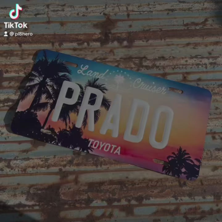 Nameplate [Large, for US cars] Palm trees, sunset / Original American embossed license plate, stylish nameplate sign