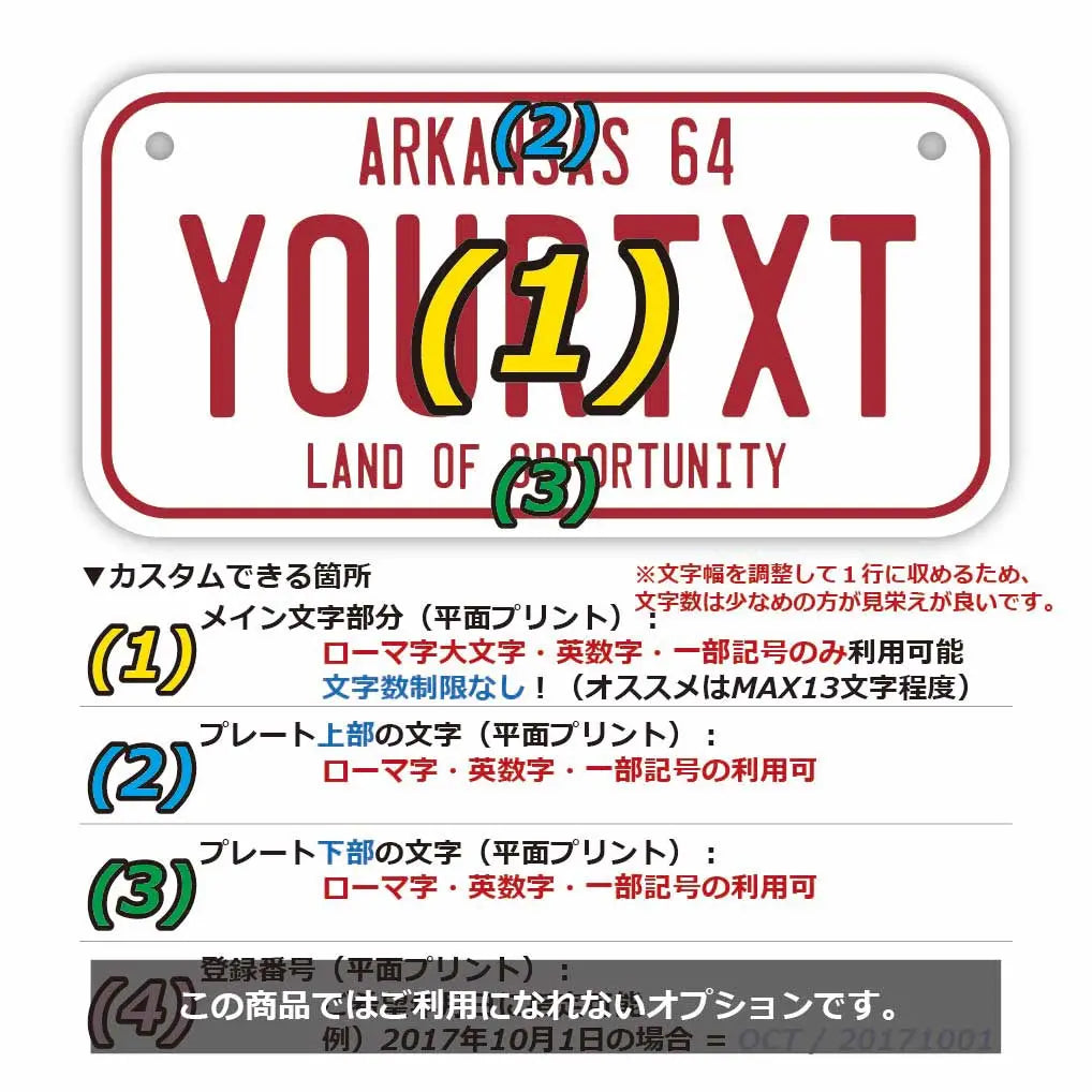 We can produce your original American license plate with the text you want, one of a kind in the world! Printed in Japan using American materials. Each plate is handmade. Tough enough for outdoor use! Holes for hanging on the wall are also included.
